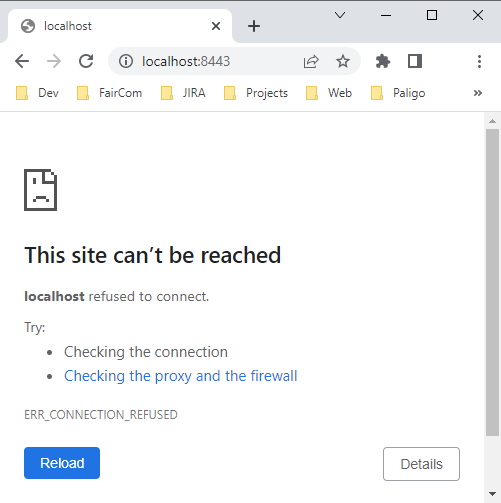 Problem: Web browser cannot connect to locally running FairCom Server